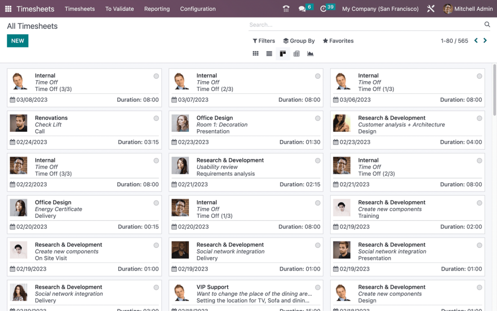 Ten todos sus proyectos bajo control y gestiona el tiempo trabajado por tus empleados desde el backend de Odoo