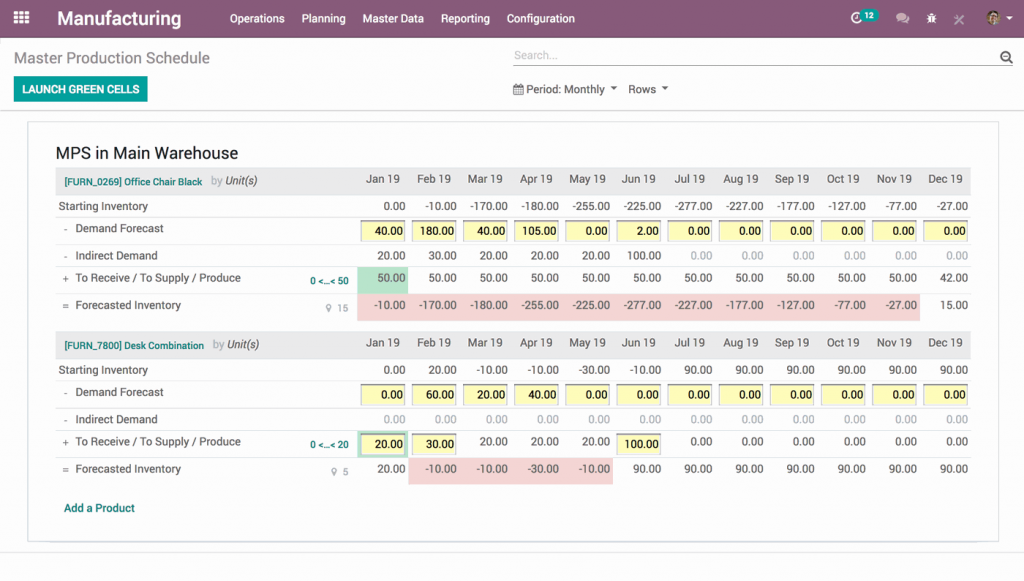 Utiliza reglas de fabricación sobre pedido, reglas de existencias mínimas o el programa maestro de producción para automatizar el aprovisionamiento. Deja que el sistema calcule todo automáticamente. Usa rutas, impedimentos y tiempos de recepción para optimizar el nivel de inventario y evitar la falta de existencias.